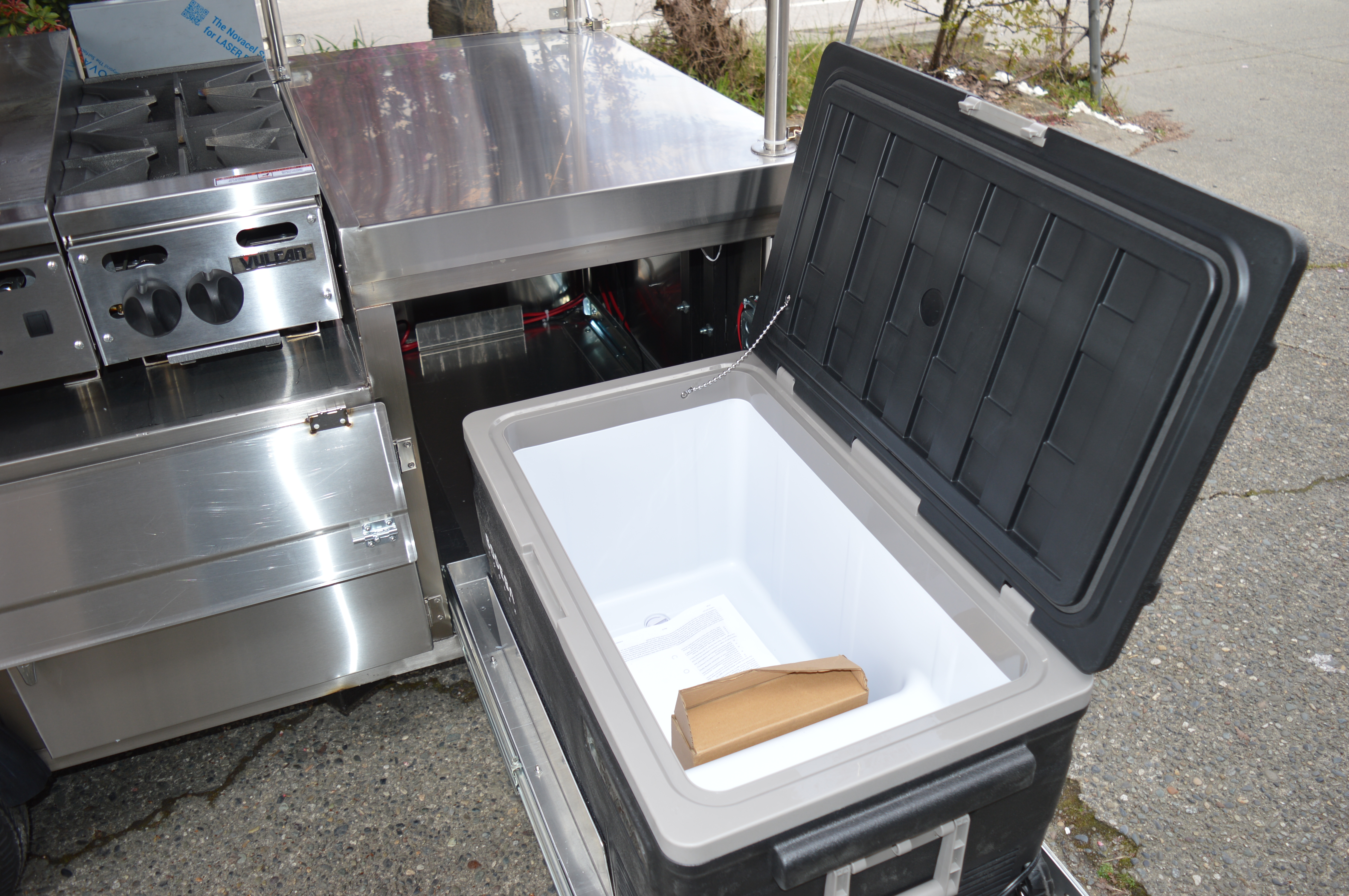 Double ware wash sinks – 10 x 10 x 6’’ deep– Customer to advise if different or cart will ship with double warewash Hand wash sink – 10 x 10 x 6’’ deep Hot and Cold Mixing Faucet 10 Imp Gallon / 45 Litre Fresh Water Tank 15 Imp Gallon / 68 Litre Waste Water Tank – Complete with dump valve and drain hose Shurflo on demand water pump 6 Gallon Suburban Water Heater – Propane Fired All water components are NSF and/or CSA approved